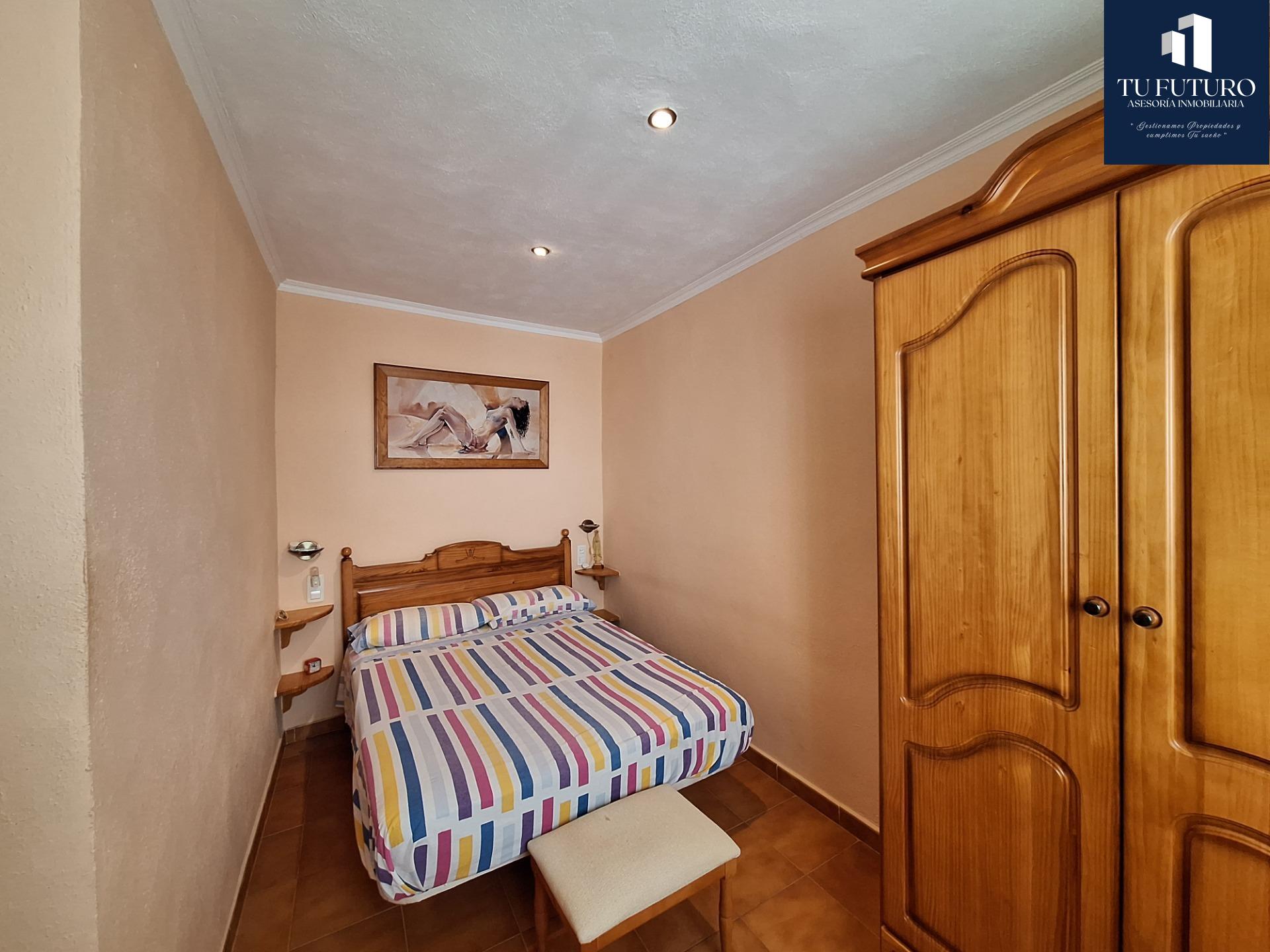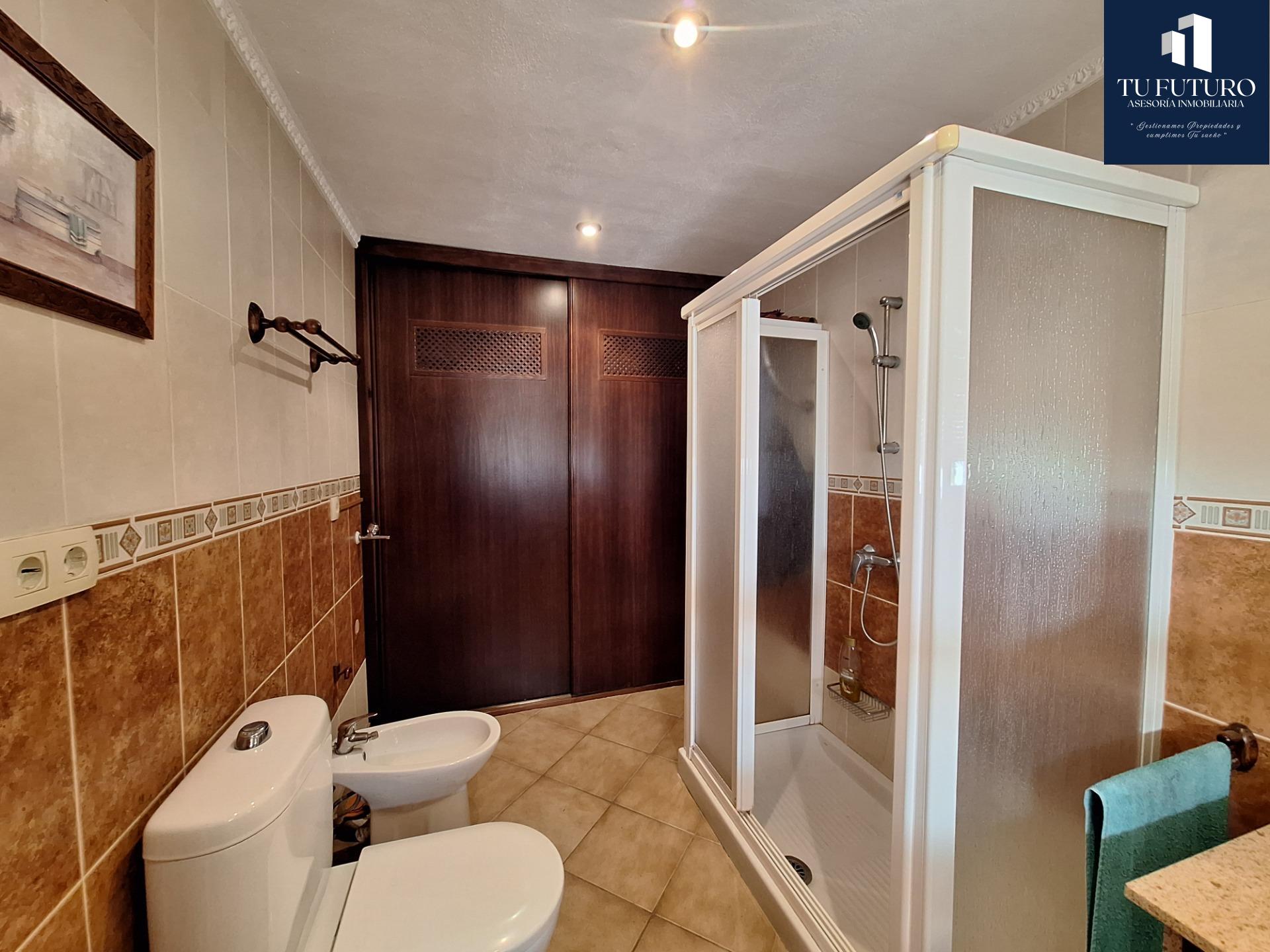 La vivienda cuenta con una distribución de dos plantas, en la que principalmente nos presenta un salón-comedor con cocina americana, todo amueblado y listo para entrar y comenzar con la rutina diaria. Además dispone de una pequeña despensa en el hueco de las escaleras y un gran baño principal con plato de ducha, más un armario al fondo en su interior, que también se puede utilizar para almacenaje.